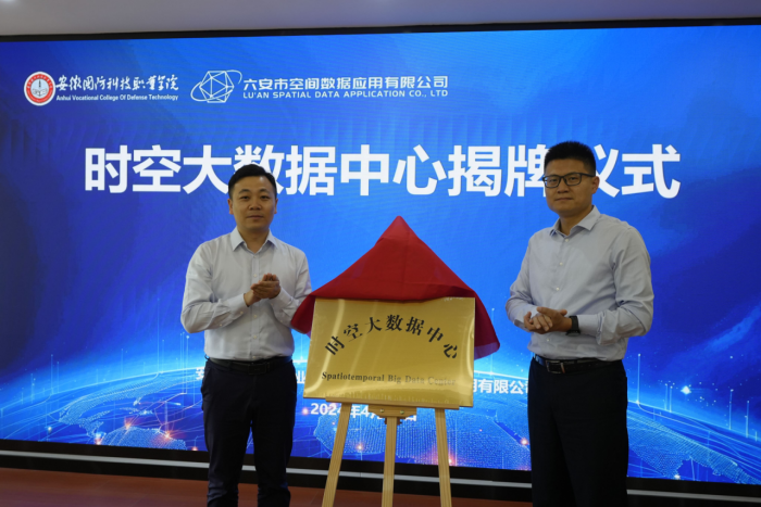 beat365在线唯一官网党委委员、信息技术学院院长沙有闯和六安市空间数据应用有限公司总经理方明共同为时空大数据中心揭牌。