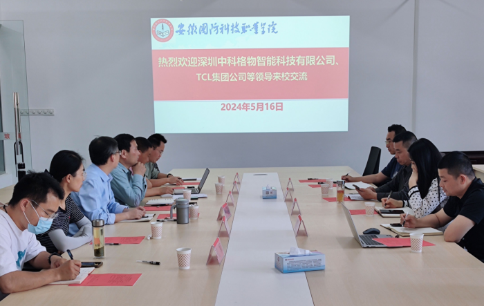 本网讯(电气技术学院 江治国)为进一步推进现代产业学院的建设工作,强化校企融合深度发展,5月16日,电气技术学院组织开展智能家居产业学院建设交流研讨会,会议邀请深圳中科格物智能科技有限公司战略顾问胡其云,TCL集团产教融合校企合作项目总经理朱碧涵、深圳中科格物智能科技有限公司安徽区域总经理陈苗苗等企业领导来校参加交流研讨活动。校企合作办公室主任、继续教育学院院长李中永,电气技术学院院长李翔、副院长江治国、物联网技术教研室主任程坤、物联网技术专业负责人史媛芳及部分骨干教师参加了此次研讨会,会议由李翔主持。