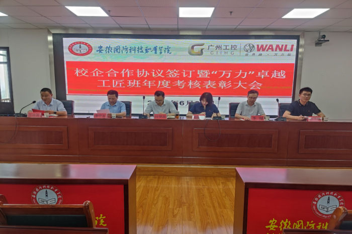 本网讯(电气技术学院 吴年祥)为进一步推进“万力”卓越工匠人才的培养,弘扬“锐意进取,精益求精,工作严谨、爱岗敬业”的工匠精神,6月26日,电气技术学院组织开展“万力”卓越工匠班年度考核表彰大会。合肥万力轮胎有限公司人力资源部部长程婧娴、招聘主管岳立强,校党委委员、副校长付贤政,校企合作办公室主任李中永,电气技术学院院长李翔等校企双方领导以及学院全体工匠班指导老师和学员参加,会议由电气技术学院副院长江治国主持。