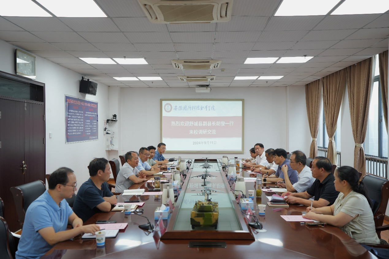 本网讯(党政办 陶常乐)9月11日上午,舒城县副县长胡俊一行来校调研学校人才培养相关工作。学校党委副书记冯伦久,党委委员、副校长付贤政等热情的接待了来宾,并在秉心楼第一会议室举行了座谈会。