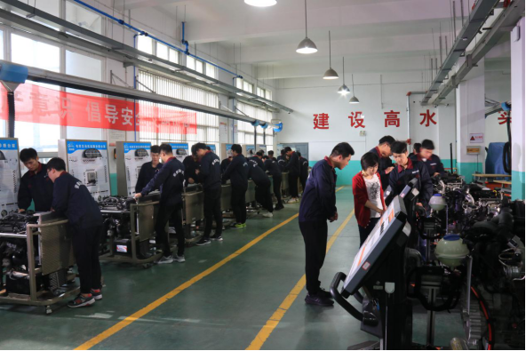 理论和实践完美融合是培养技术技能型人才的必由之路。多年来,beat365一直致力于打造一支既能文又能武、既会说又会做的“双师型”教师队伍。上图为青年教师刘洋洋专心致志给学生演示指导汽车发动机拆装。