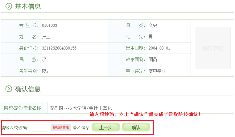 特别提醒:高职扩招录取确认只有在规定时间内(12月10日-12日),在规定网站(gkbm.ahzsks.cn)上操作方为有效。请各位考生一定要妥善保管自己的考生号、身份证号等个人信息,切勿泄露给其他人,更不要委托他人代替自己确认。一旦确认了录取院校,是不能修改的!!!