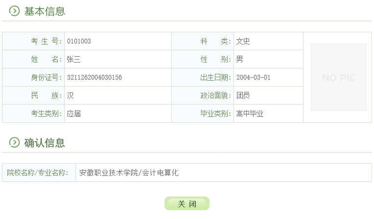 3. 退出后重新登录gkbm.ahzsks.cn,可以查询到自己确认的院校:
