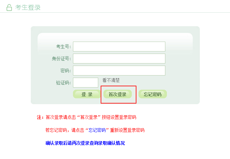 1. 使用IE浏览器登录gkbm.ahzsks.cn。如果是第一次登录系统,请点击“首次登录”按钮,跳转至设置登录密码页面。