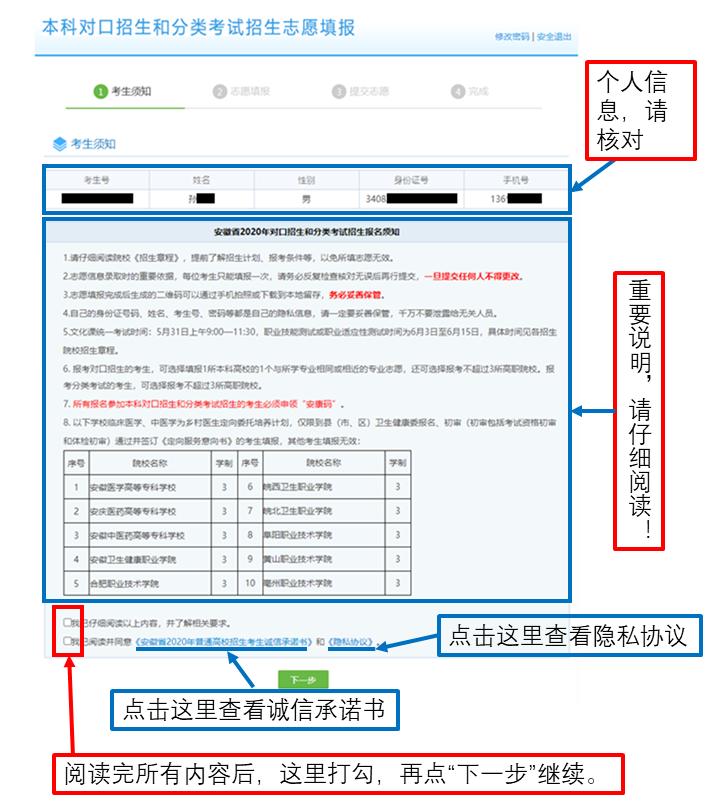 2. 考生本人的考生号、身份证号、志愿、手机验证码均为自己隐私信息,切勿泄露;
