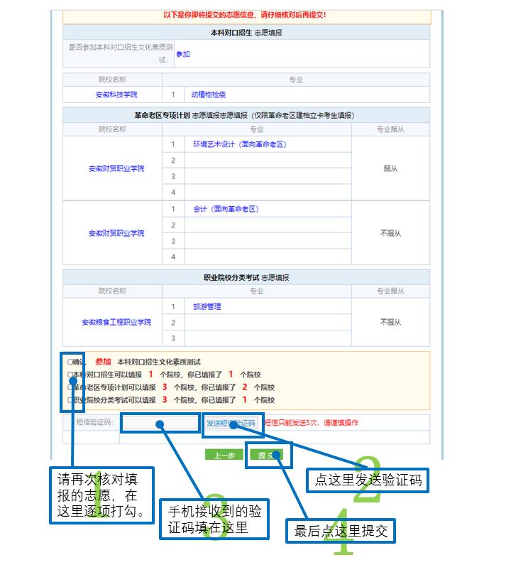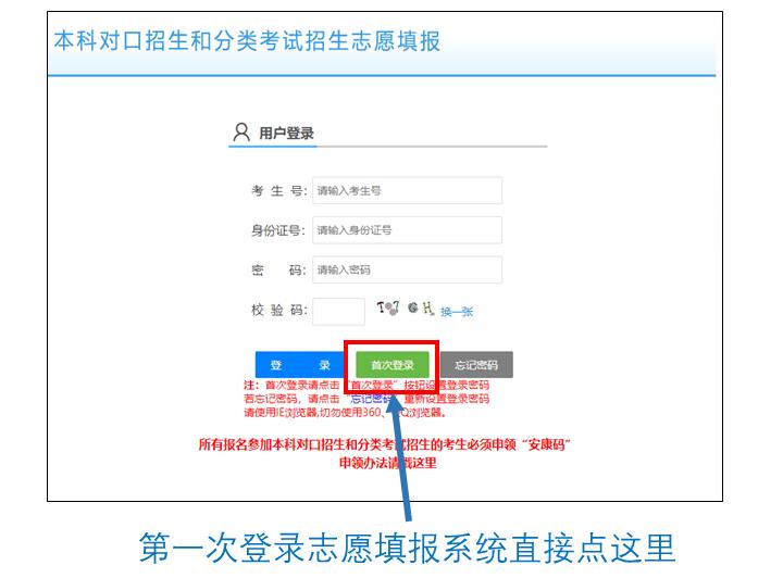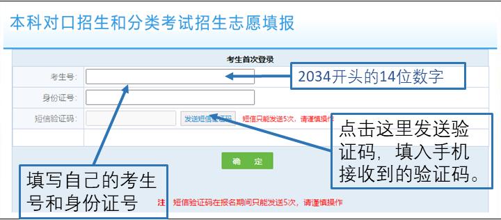 3. 首次登陆和志愿提交时均会发送短信验证码,如遇无法接收短信验证码、遗忘考生号等问题,请联系报名点或当地招办。