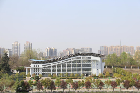 绿茵环绕的现代化体育馆