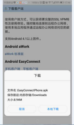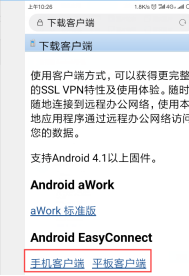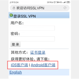 方法二:通过手机打开学校官网,在“快速通道”中打开“远程访问”,在登录界面上点“IOS客户端”或“Android客户端”即可下载手机APP安装程序。
