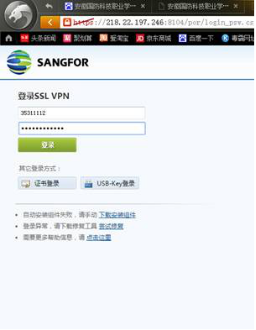 注意:登录完后,不要关闭,可以最小化窗口,这时就可以使用校内网络资源(校内网络资源包括内网地址或通过校内IP段识别的外网资源两种情况)。