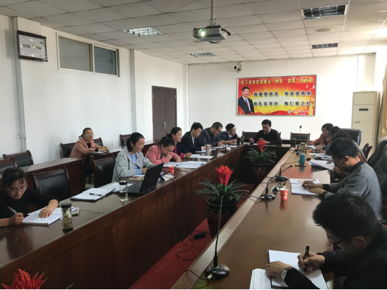 本网讯(思政部 聂勇)举世瞩目的中国共产党第十九次全国代表大会胜利召开!为了深入学习贯彻党的十九大精神,学校思政教学部组织全体教师收听收看十九大开幕盛况,全程聆听了习近平代表第十八届中央委员会向大会所作的题为《决胜全面建成小康社会 夺取新时代中国特色社会主义伟大胜利》的报告,之后,各位老师通过自学,认真研读报告原文,在线聆听权威专家解读,在此基础上,11月1日下午,思政教学部召开集体备课会专题学习贯彻党的十九大精神,交流学习心得和体会,以期进一步加深对十九大精神实质的领悟,推动十九大精神进课堂,进学生头脑。校党委委员、宣传部长、思政部主任袁旗出席并主持会议,全体思政部教师参加了备课会。