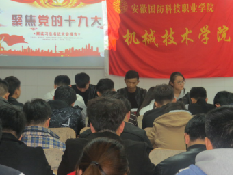 本网讯(机械技术学院 袁帅)11月17日下午4点,机械技术学院团总支于2教108召开以“不忘初心,牢记使命”为主题的学习十九大精神座谈会。出席此次会议的有团总支书记袁帅、团总支学生会主席郭广涛、团总支副书记王佳乐和院属学生会副部级以上干部、各班班长及团支书。
