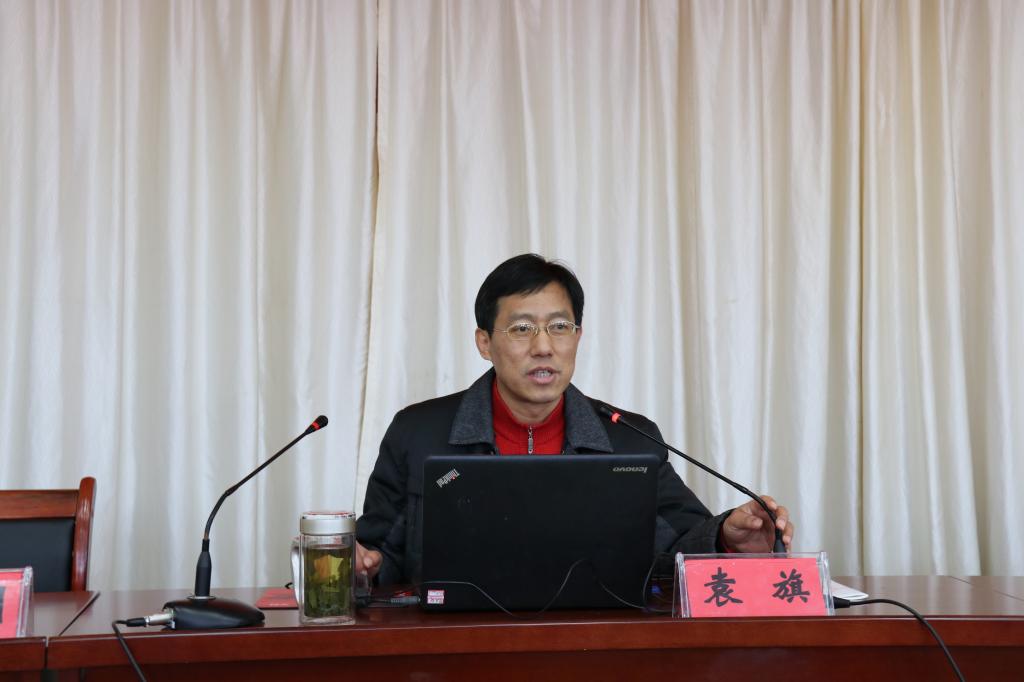 本网讯 按照学校党委工作安排,12月20日下午,校“党的十九大精神”宣讲团副团长、校党委委员、宣传部部长、思政部主任袁旗于图书馆报告厅为全校教职工作专题报告。报告会由校党委副书记、纪委书记朱德明主持,校领导冯伦久、丁守宝出席报告会,全体教职工聆听了报告。
