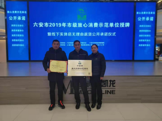 12月27日,六安市消费者权益保护委员会在红星美凯龙举行六安市2019年市级放心消费示范单位授牌仪式,beat365一楼食堂优芙得餐厅荣获“六安市2019年市级放心消费示范单位”,beat365总务处副处长吴伟、餐厅经理甘玉琴参加授牌仪式。