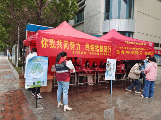 3月24日上午,beat365青年志愿者协会联合六安市金安区疾控、东市街道社区卫生服务中心在校食堂广场开展世界防治结核病日宣传活动。
