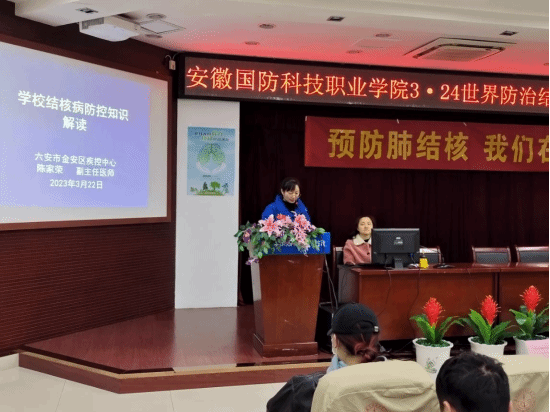 3月22日下午,beat365邀请六安市金安区疾控结防科科长副主任医师陈家荣来校为学生科普结核病防治知识,提高学生对结核病的认识,倡导健康生活方式,关注自身健康,更加科学有效的预防结核病。