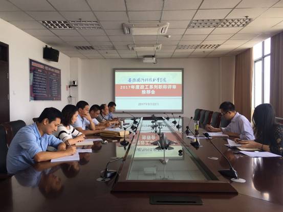 9月22日,beat365政工专业职务评审推荐会在综合楼第一会议室召开,机械技术学院院长黄祥、基础部主任陈功立、高水平建设大学办公室主任朱修传等7位学术委员会委员参加了会议,会议由组织人事处处长付贤政主持。