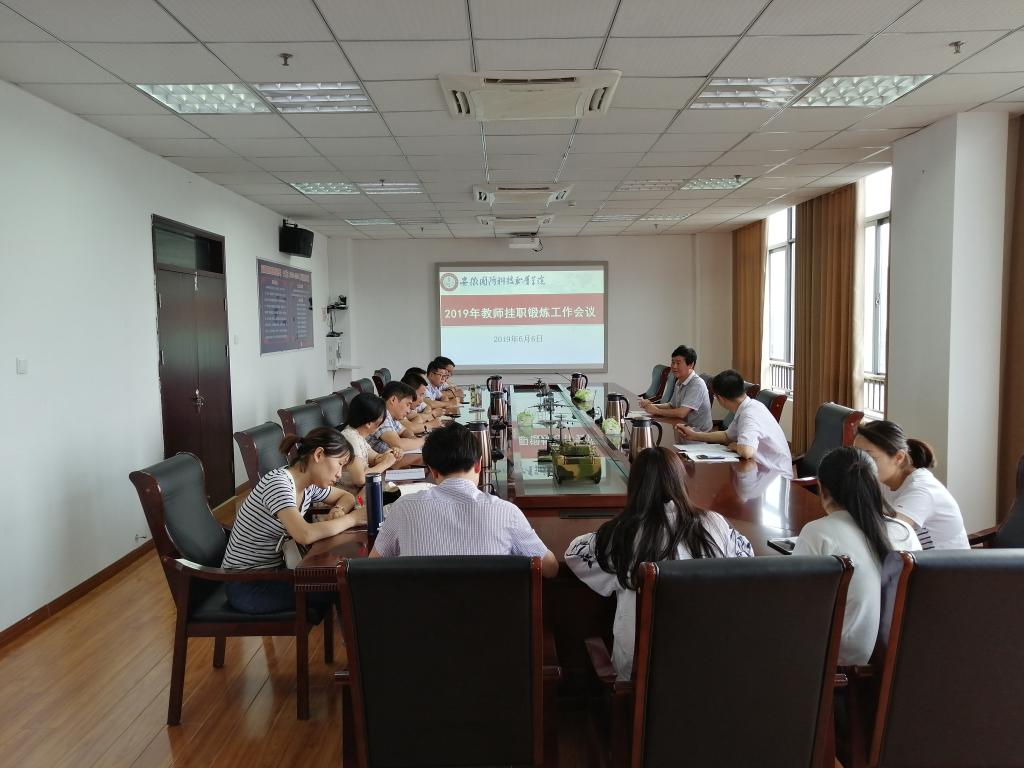 201966日下午, 学校在综合楼第一会议室召开了2019年教师挂职锻炼工作会议。参加会议的有校党委书记余嗣元,校党委委员、组织人事处处长付贤政,以及2018年参加挂职锻炼的教师。会议由付贤政主持。