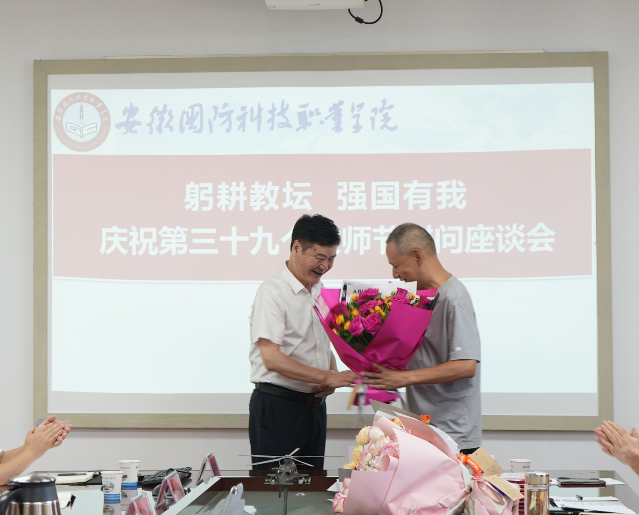 余嗣元书记为教职工代表送上鲜花