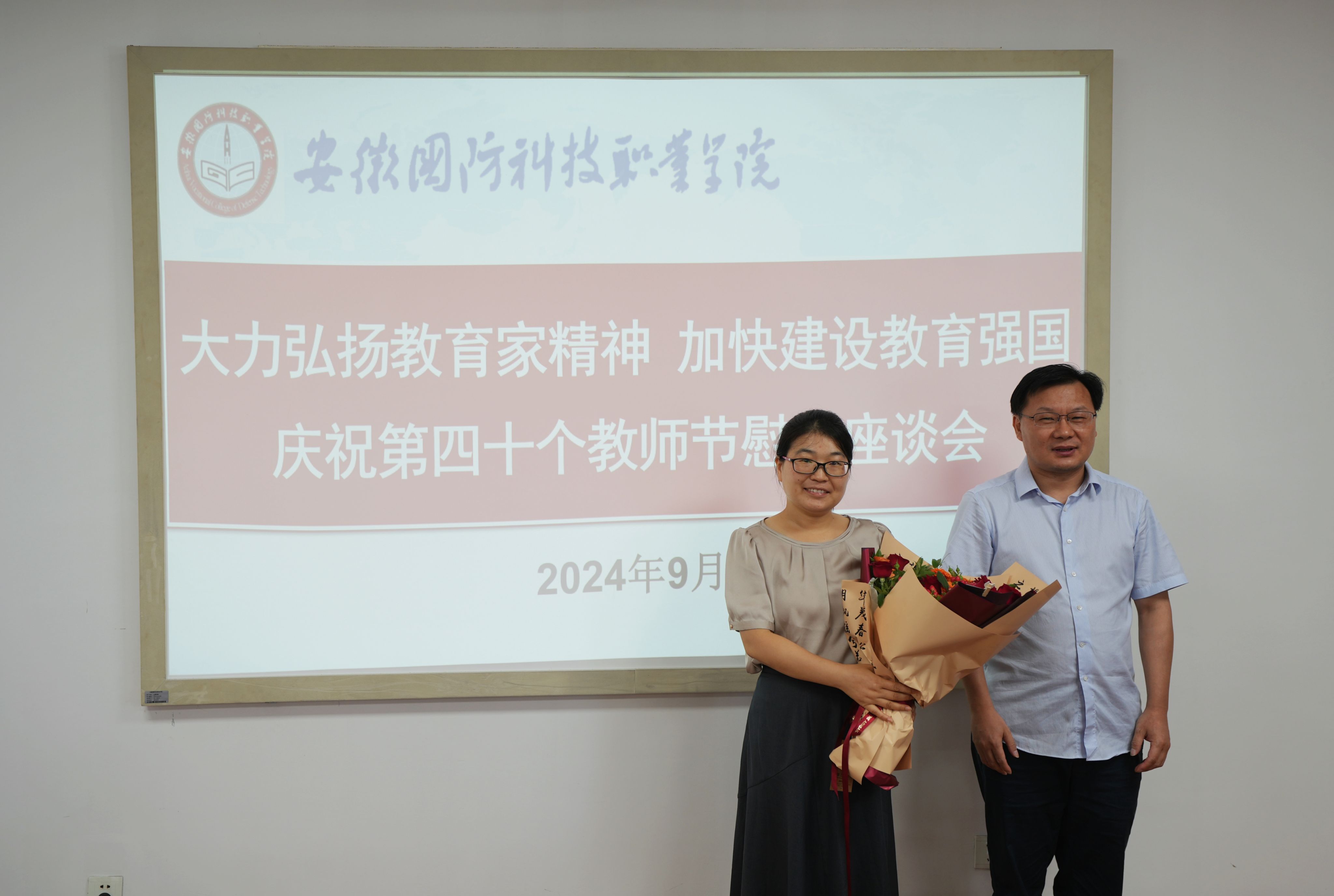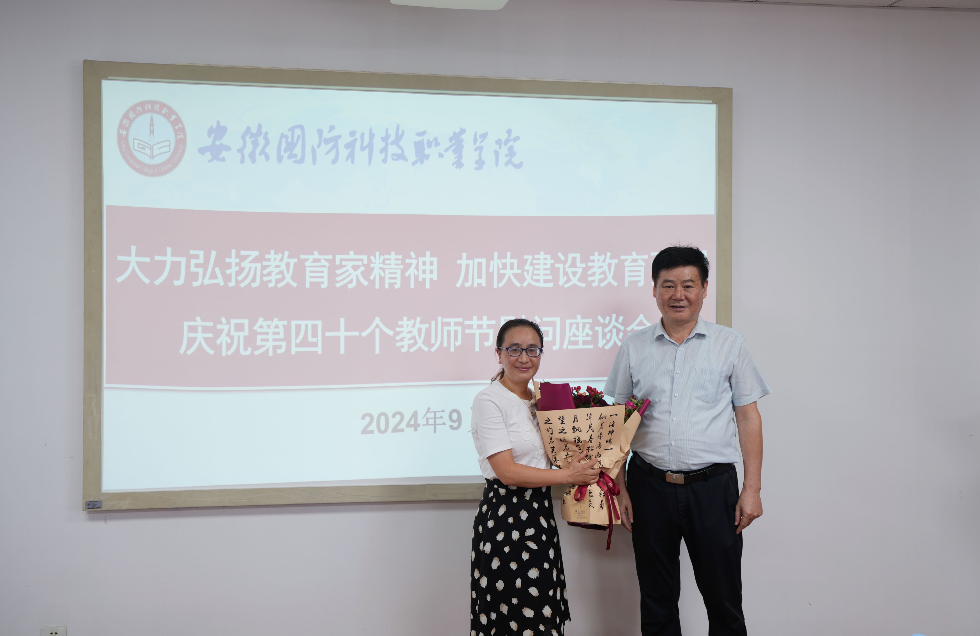 余嗣元书记为教职工代表送上鲜花