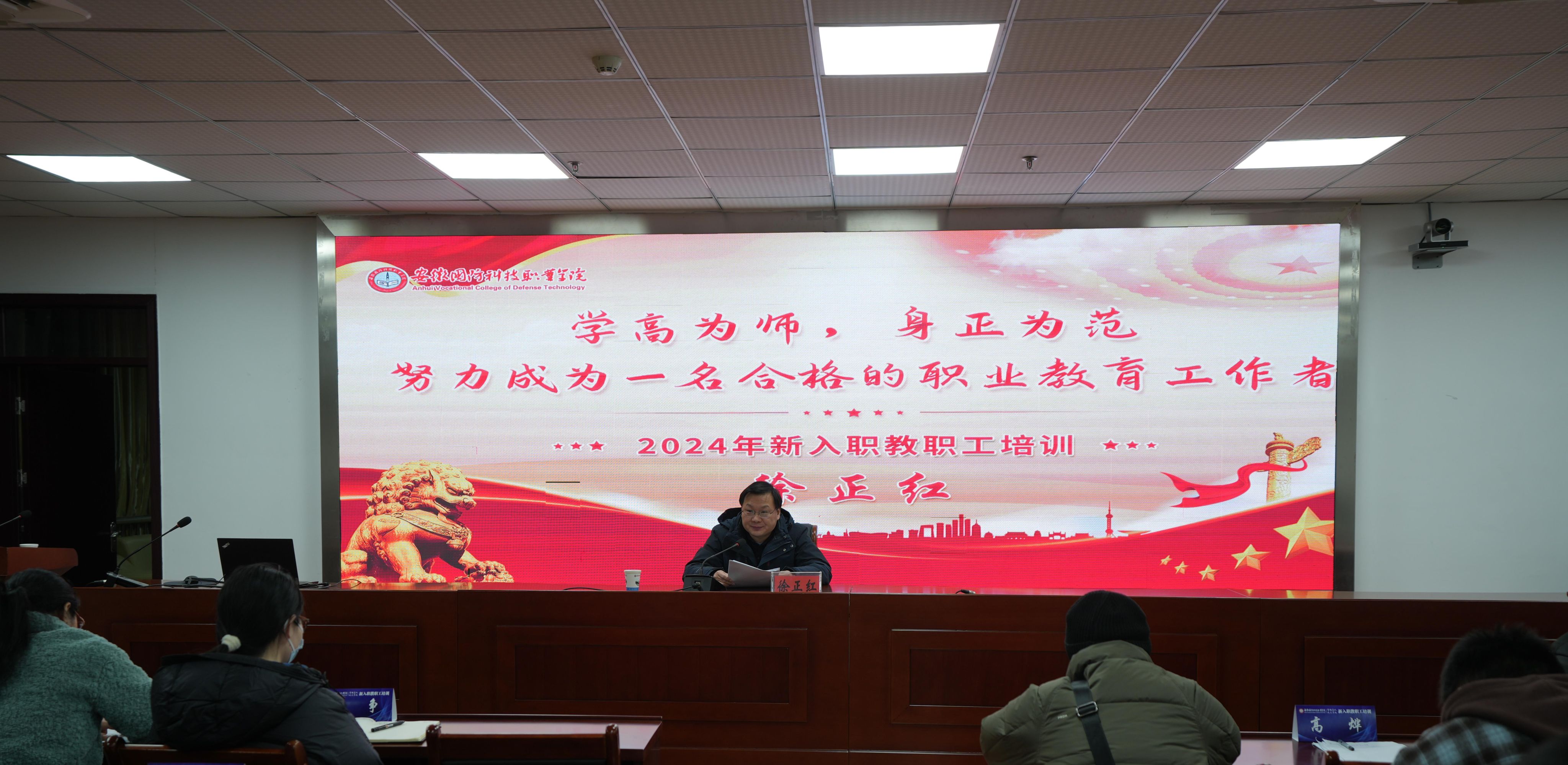 校党委副书记、校长徐正红以“学高为师,身正为范—努力成为一名合格的职业教育工作者”为主题作开班第一讲。他从“怎样看教育”、“怎样看职业教育”、“努力成为新时代职业教育良师”三个方面带领新进职工深入学习了教育的重要性、教育强国建设的理论基础和实践框架、推进教育强国建设具体做法,职业教育发展历程、重要地位和作用及其发展方向。他强调每位教师要时刻保持对教师职业的敬畏之心,注重涵养高尚师德师风,将教育家精神融入教育教学全过程,不断提升自身的专业素养,并密切关注产业发展新趋势新动态,确保教学内容与企业实际需求紧密结合。
