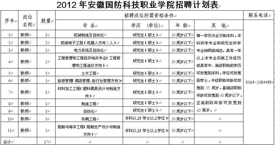 附:2012年安徽国防招聘计划