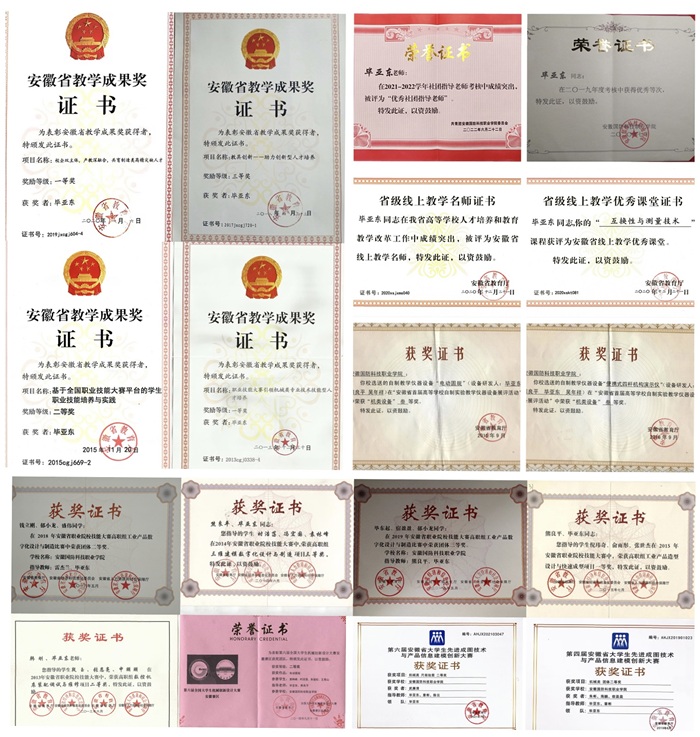 倾心以赛促教,全力做好大赛指导。职业技能大赛是学生培养质量的试金石,是教学改革的试验场。毕亚东同志重视学生培养工作,指导学生在国家级职业技能大赛中获二等奖1项;在省级职业技能大赛中获一等奖2项、二等奖2项、三等奖4项;在全国大学生机械创新设计大赛中获安徽赛区二等奖1项;在国家级大学生先进成图技术与产品信息建模创新大赛中获一等奖1项,省级一等奖3项,二等奖10项,三等奖多项。